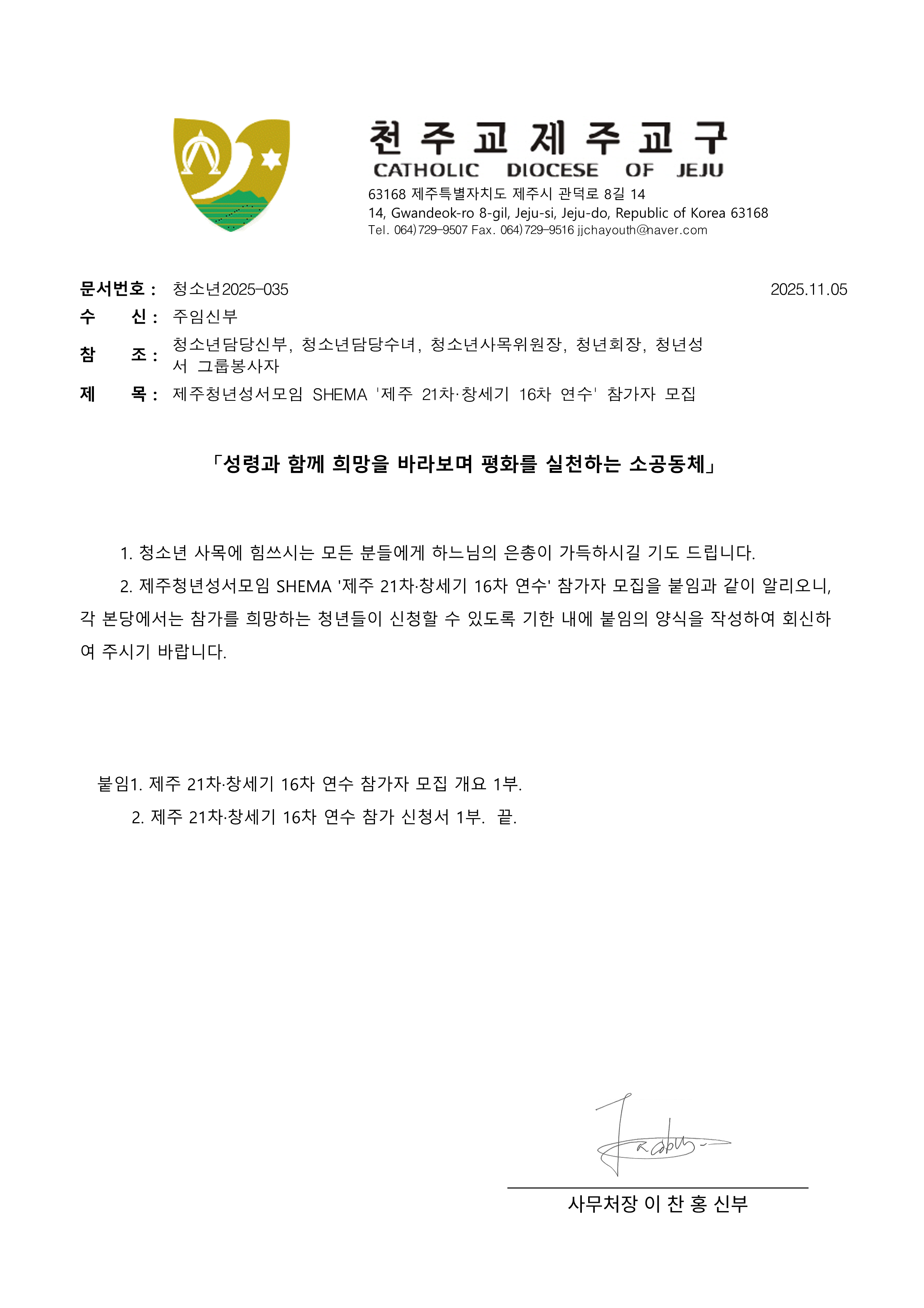 청소년2025-033(제주 21차·창세기 16차 연수 봉사자 모집)